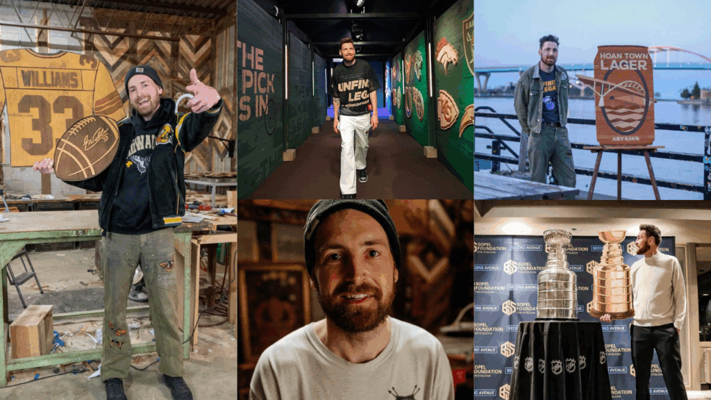 In his Milwaukee studio, he’s transforming recycled pieces of wood into artistic expressions of positivity for people, sports teams, brands, and communities – without using a drop of paint or smear of stain.
